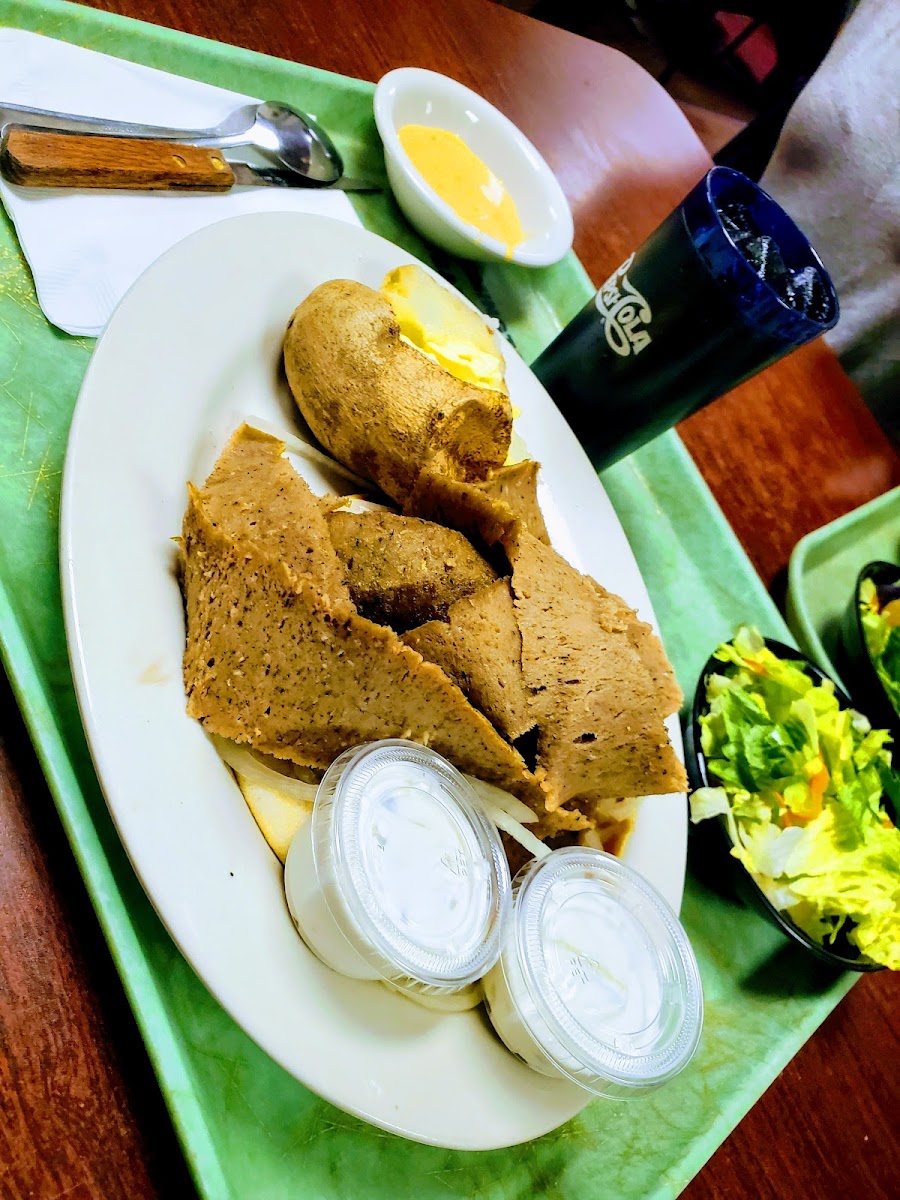 Delicious food and wonderful staff. A hole in the wall joint that ya can't miss. Not the fanciest spot as you slide your tray along to get food and they only take cash, but definitely my favorite steak spot.