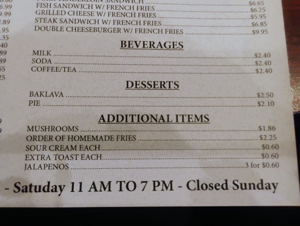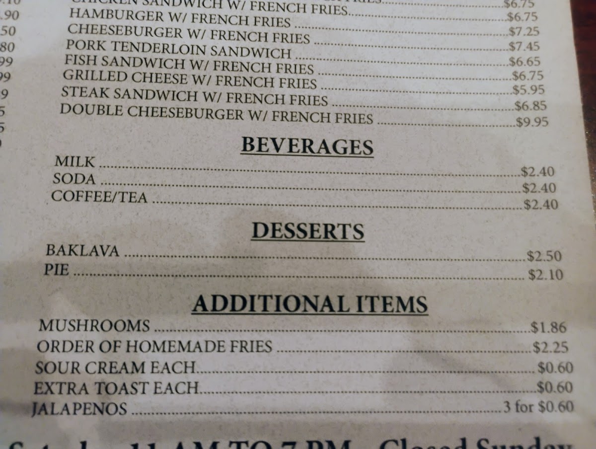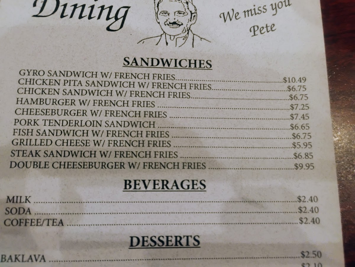 Guests often come here to enjoy a fulfilling meal any time of day—whether settling in for a robust ribeye steak dinner with baked potato and Texas toast, grabbing a flavorful gyro or chicken sandwich at lunch, or sharing a generous portion of BBQ pork ribs with family. The menu pairs well with the restaurant’s warm, unpretentious atmosphere, where meals feel familiar and unhurried, inviting you to enjoy simple, honest flavors made with care.